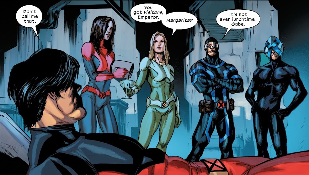 So, like, these poor young people are essentially forced into service by Professor X before they’re ready and he gets them killed. And then when Petra and Sway are resurrected on the new Krakoa and given a second chance at life…they choose to spend it still wearing the costumes in which they died, hanging out with one of the guys they were forced onto a team with? Just wasting away on the moon?