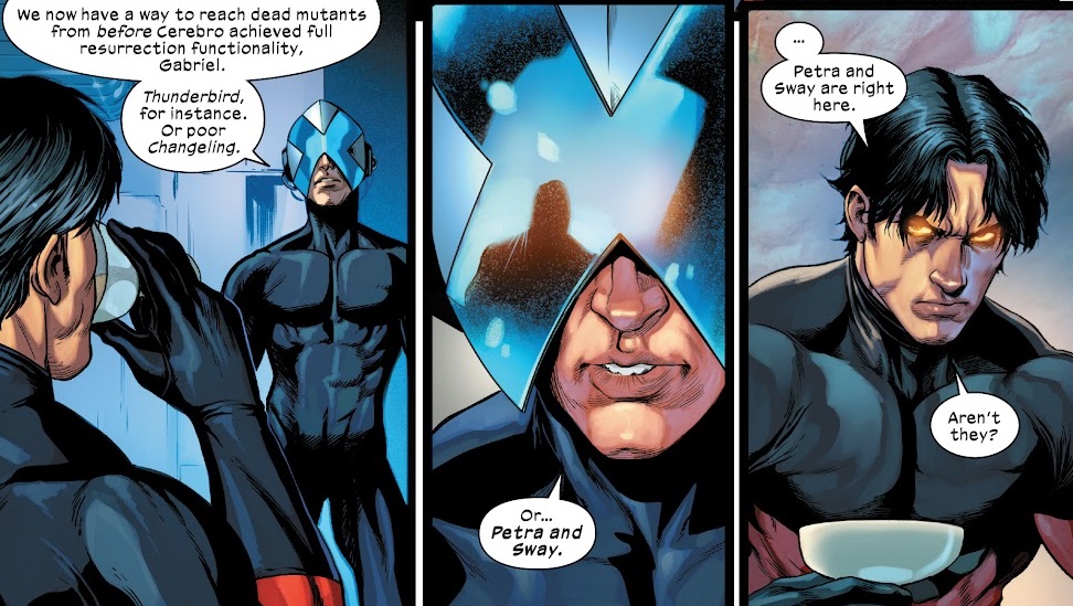 One of the few things that has really bugged me in the Krakoa era is what I saw as a misuse of the characters Petra and Sway. According to some X-Men comics, after being resurrected, Petra and Sway apparently spent all of their time wearing their old costumes and hanging out with Vulcan, one of their X-teammates.
